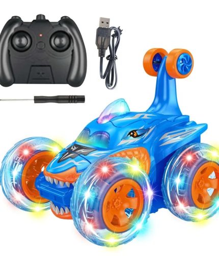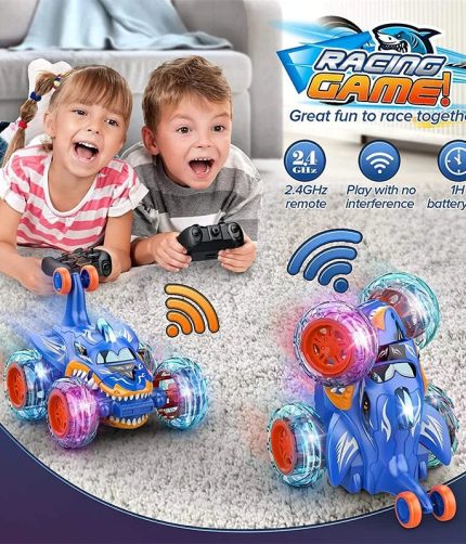 Samtoy 2.4g Twist Vehicle Remote Control Truck Rc Cool Shark 4wd Stunt Car 360 Rotating Toy for Kids With Wheel Lights