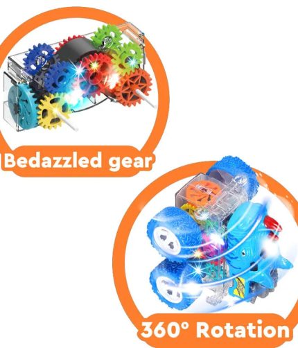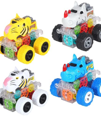 SamToyCn Battery Operated Bedazzled Gear 360 Rotation Off Road Four Wheel Drive Truck Flash Light UP Animal Friction Toy Vehicle