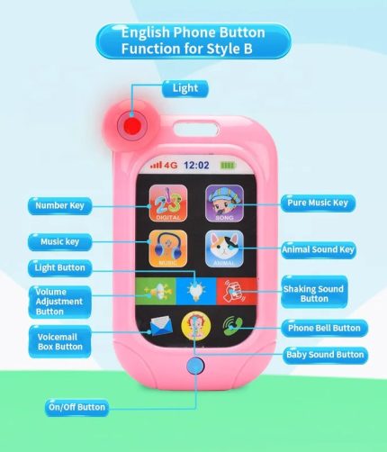 Samtoycn Pink Touch Screen Early Educational Toys Musical English Mobile Cell Phone Baby Phone Toy for Kids
