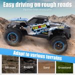 This remote control car is equipped with a 7.4V lithium battery, reaching speeds of up to 12km/h, providing an exhilarating driving experience. Whether indoors or outdoors, this car performs exceptionally well, suitable for various terrains. Its 1:10 scale makes the vehicle look more realistic, while ensuring stability and safety in operation.