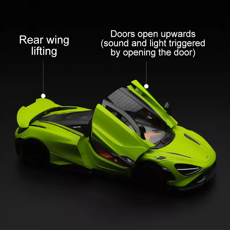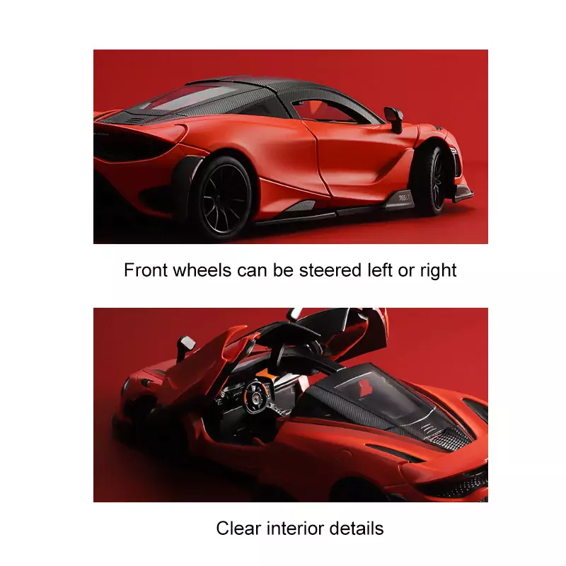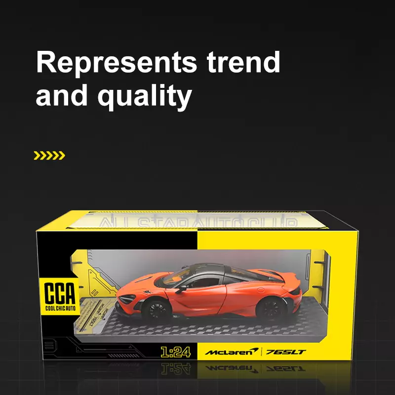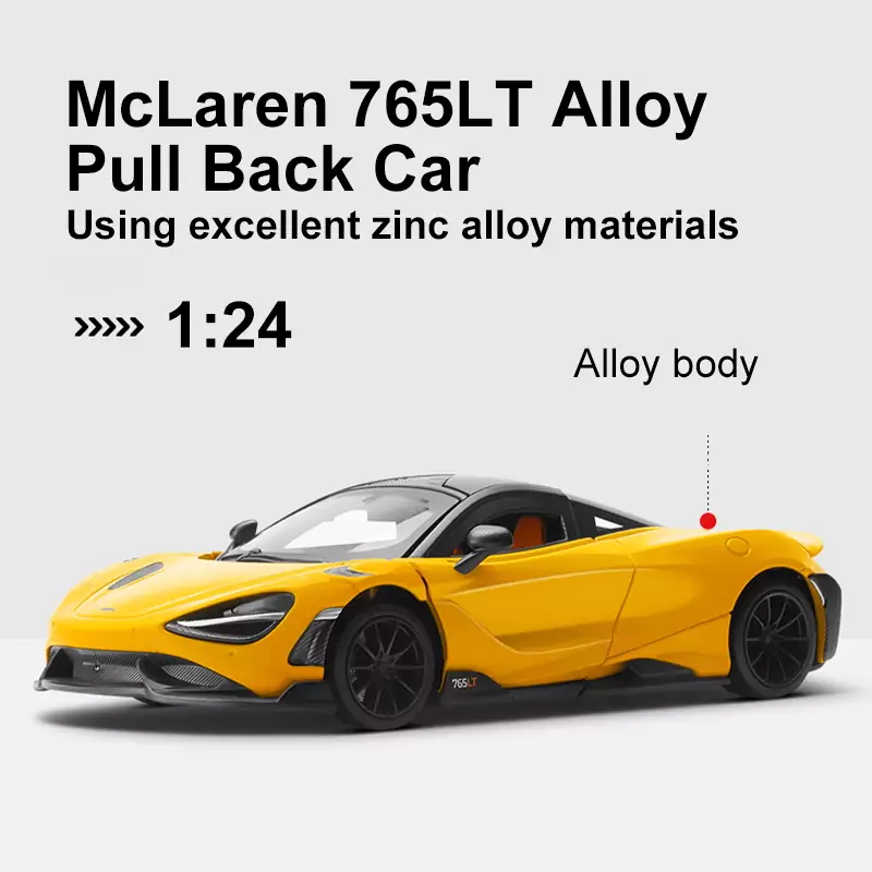 | Product Name | 1:24 McLaren 765LT (Mute Orange/Green/Yellow) Alloy Pull Back Die Cast Car |