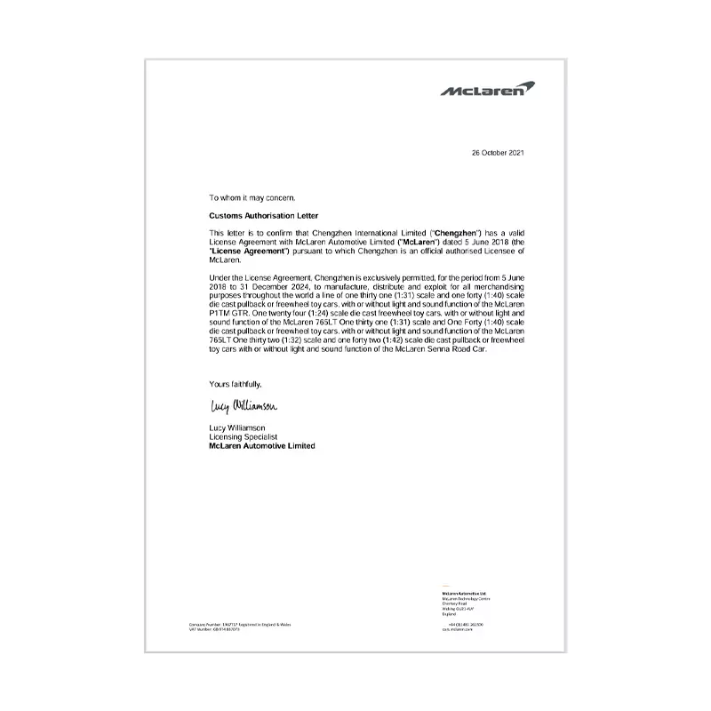 | Product Category | Licensed Cars |