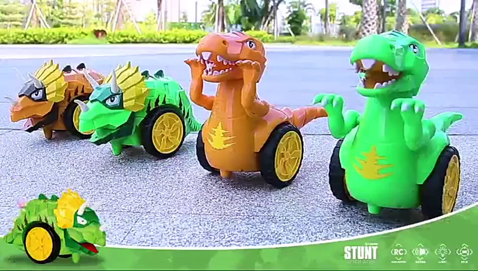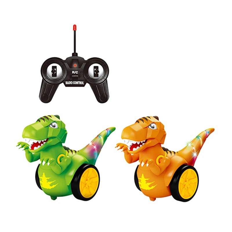 2.4G 5CH 1:10 Scale Plastic Light up Musical Toy Remote Control Rotation Walking Dinosaur RC Stunt Car for Kids