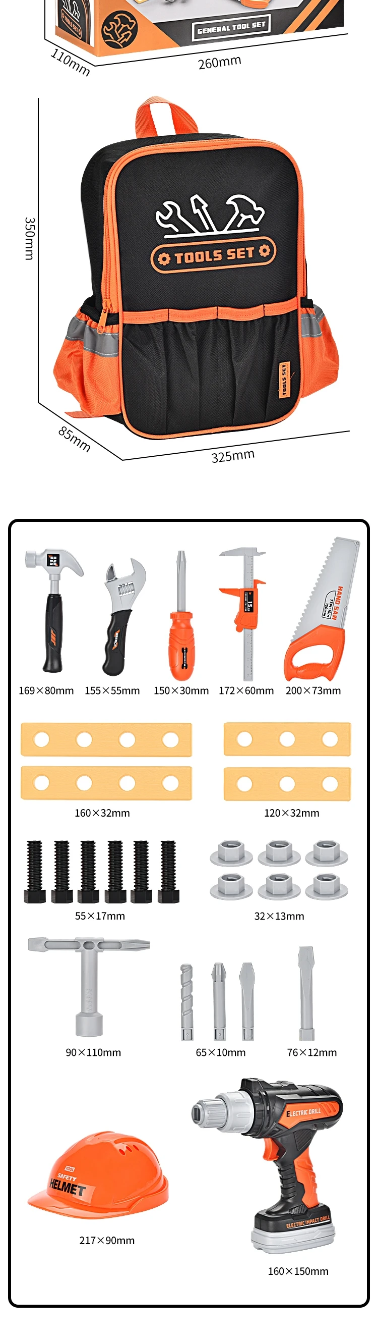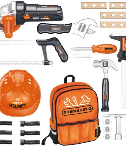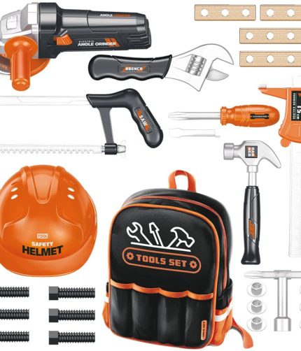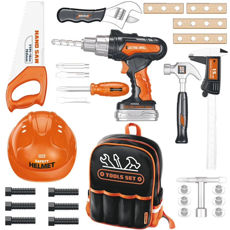 28PCS Kid Pretend Play Preschool Plastic Electric Angle Grinder Other Hand Tools Chain Saw Simulation Tool Set Toy with Backpack