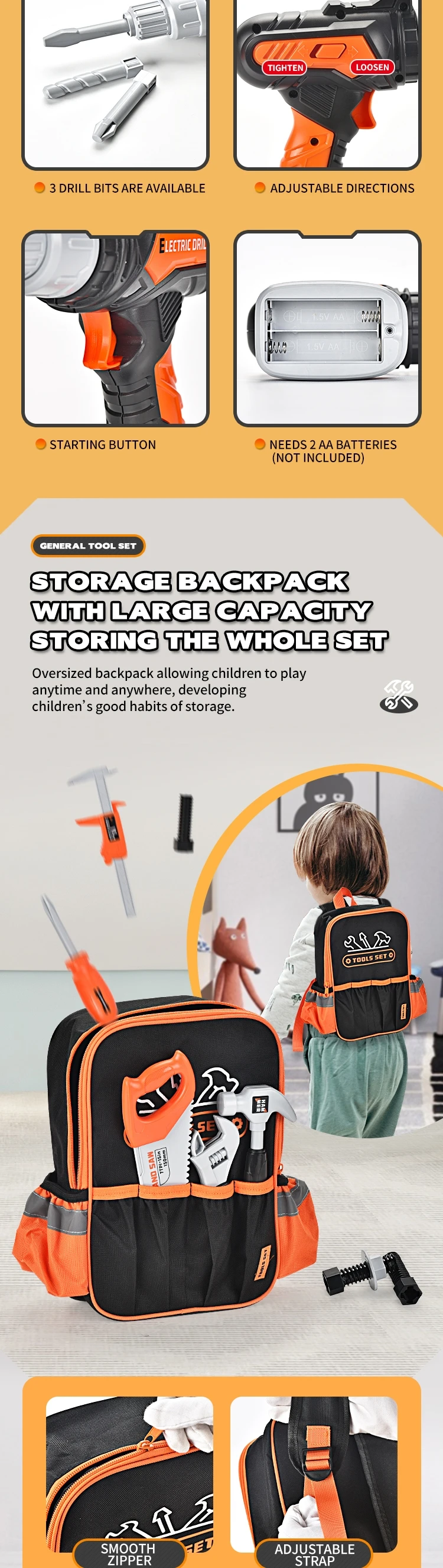 | Description | Samtoy Kids Preschool Simulation Plastic Repair Electric Drill Pretend Play Tool Set Toy for Boys |