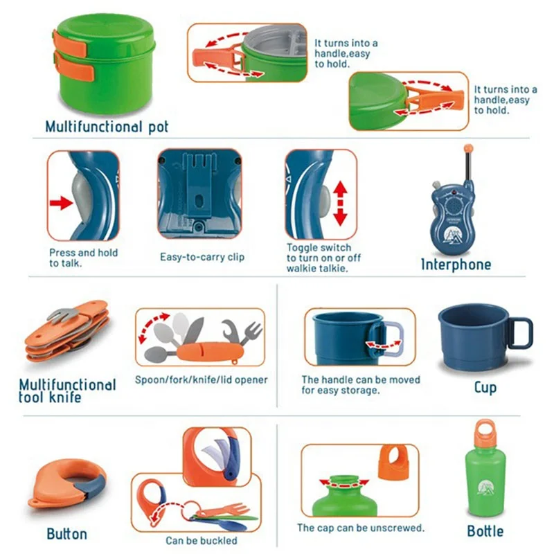 | Packaging Details | 1 set/ color Box, 6 Boxes/ Carton, can change the quantity per carton 29PCS Kids Outdoor Game Set Camping Forest Adventure Toy Tent for Educational |