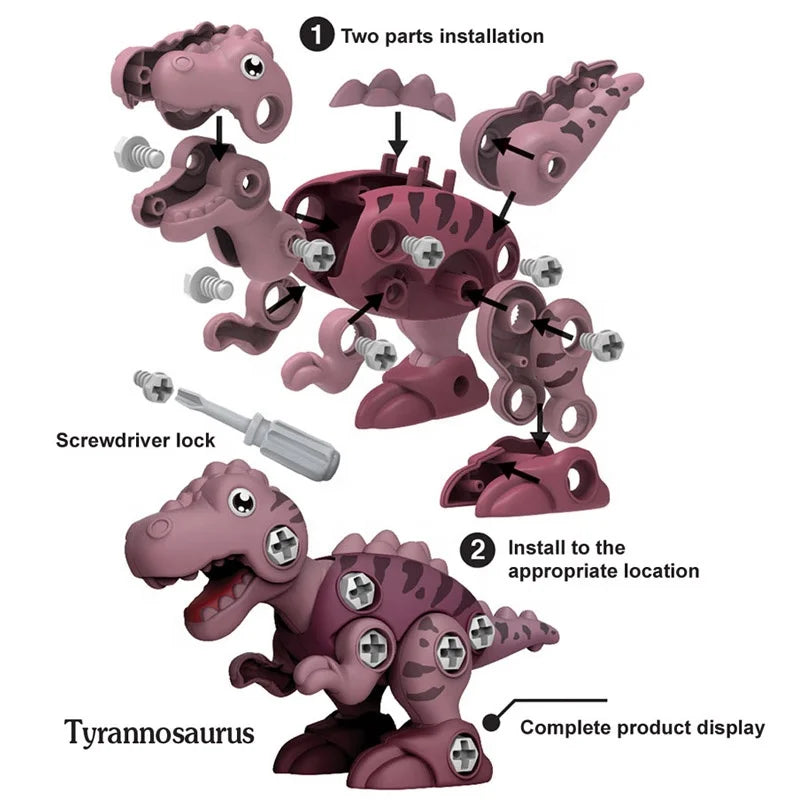 Drill Screw DIY 3D Puzzle Disassembly Assemble Dinosaur with Packing Egg