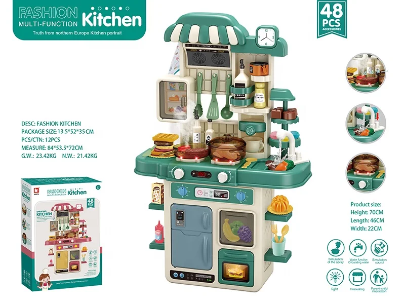 | Product Description | 48 PCS Battery Operated Light UP Music Water Function Cooking Table Mist Spray Kitchen Play Set Toy |