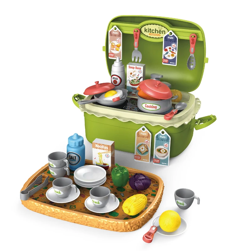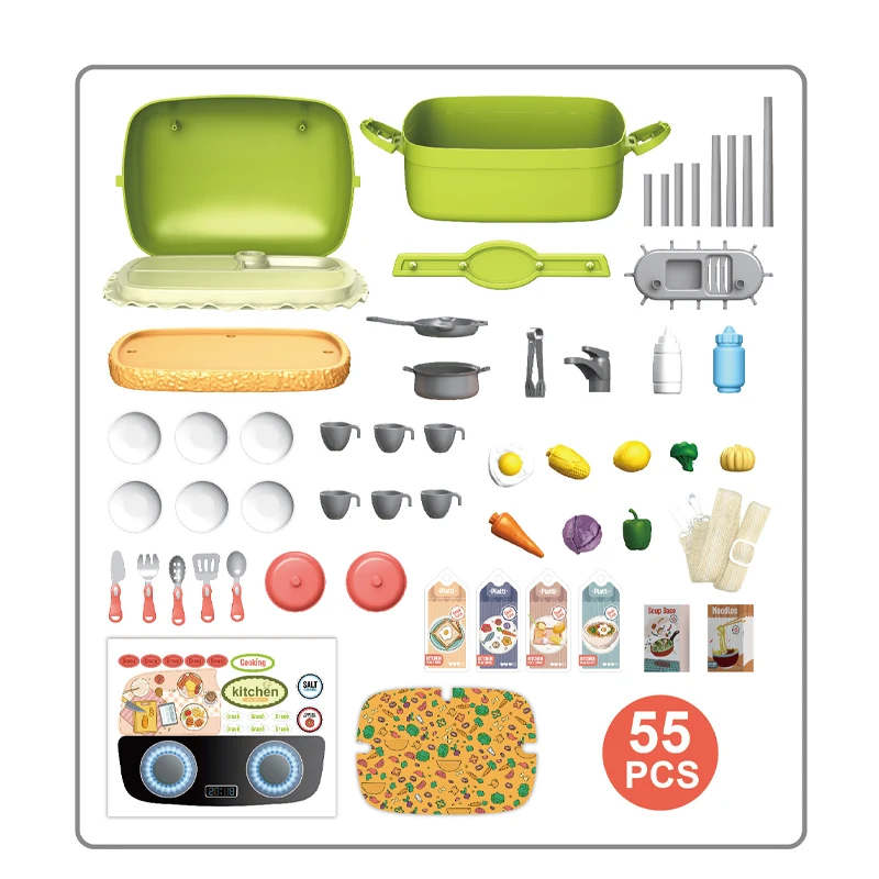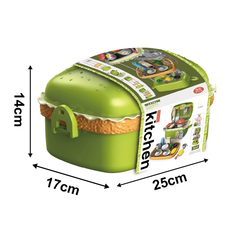 | Description | 55PCS 3 In 1 Educational Indoor Outdoor Role Play Game Tableware Storage Box Toys Kitchen Play Set for Kids |