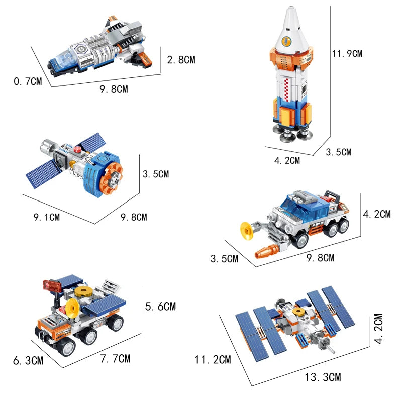 644 PCS 6 Sets DIY Small Plastic Particle Micro Space Rocket Assembly Construction Toy Space Corps Building Blocks for Kids