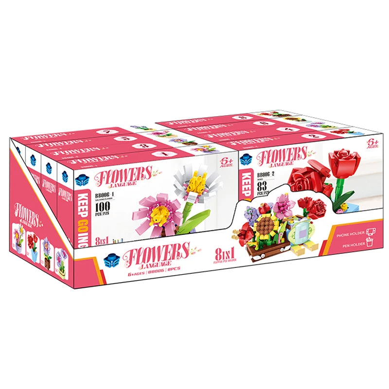 | Packaging Details | 8 set/Display Box, 24 Boxes/ Carton, can change the quantity per carton752 PCS 8 Sets DIY Small Plastic Particle Micro Plant Flower Building blocks |