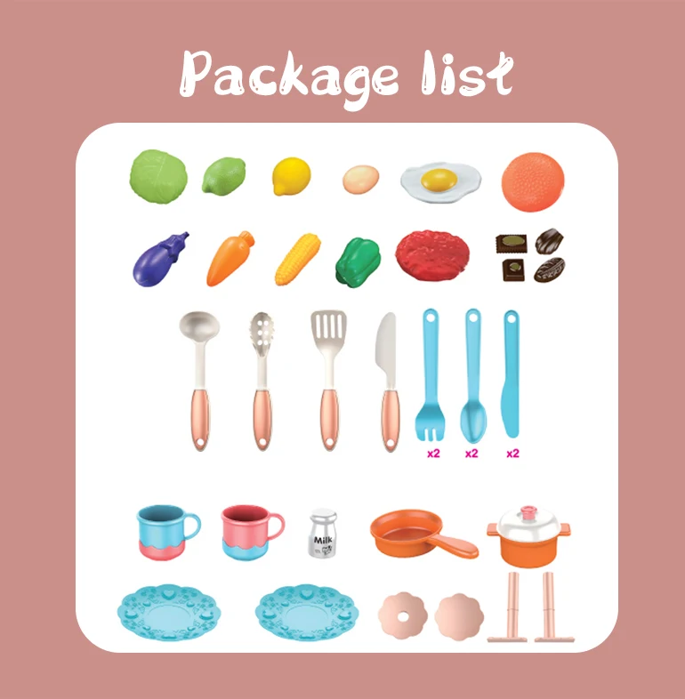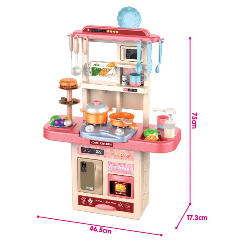 | Packaging Details | 1 set/ Color Box, 10 boxes/ Carton, can change the quantity per carton75CM DIY Electric Music and Light Pink Cookware Tableware Kitchen Set Toy with Certificate |