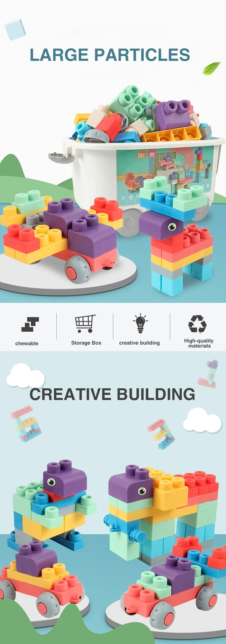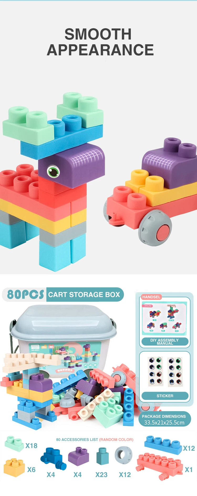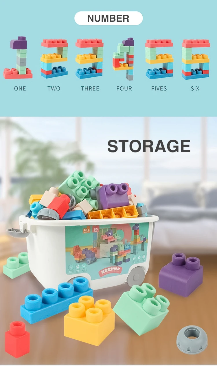 Detail of?80 PCS STEM Educational Montessori DIY Baby Play Eco Friendly Rubber Big Large Soft Silicone Building Block for Kids