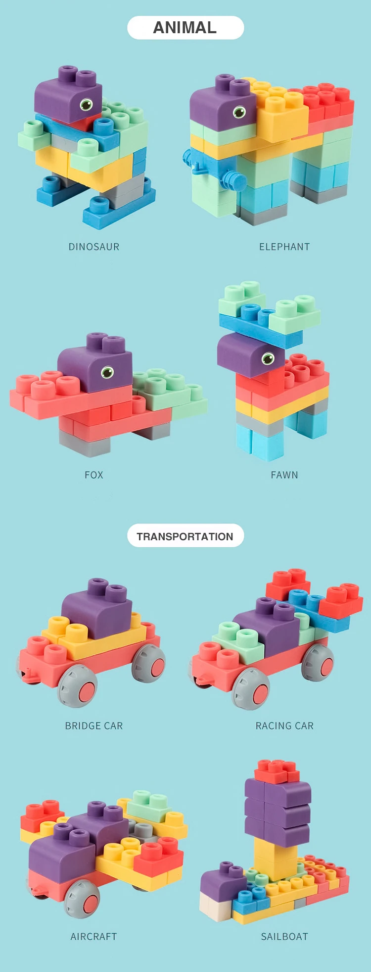 | Product name | Educational DIY Baby Play Rubber Soft Building Blocks |