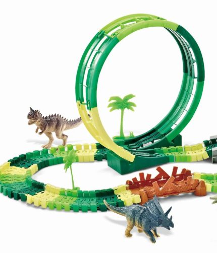 Spray Dinosaur World 360 Rotate Loop Flexible Track 2.4G 6CH RC Rail Car Slot Toys