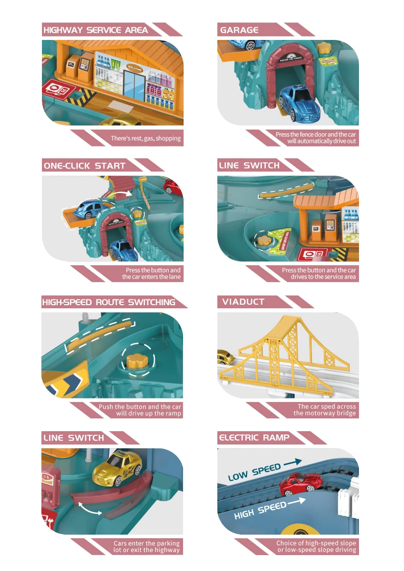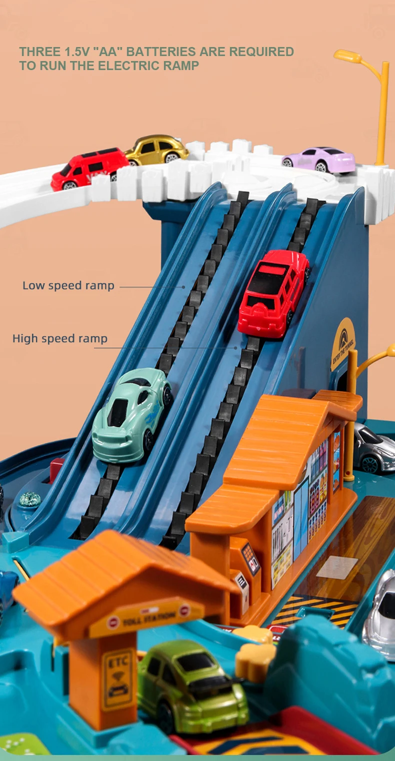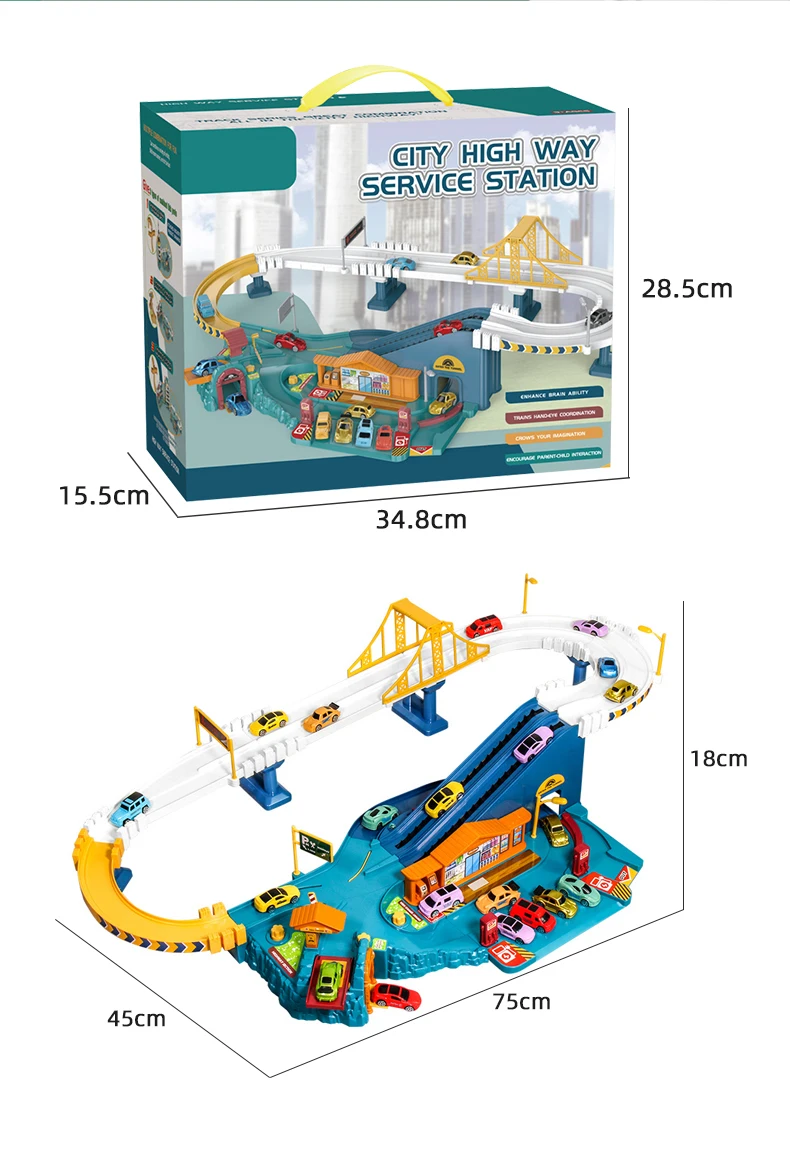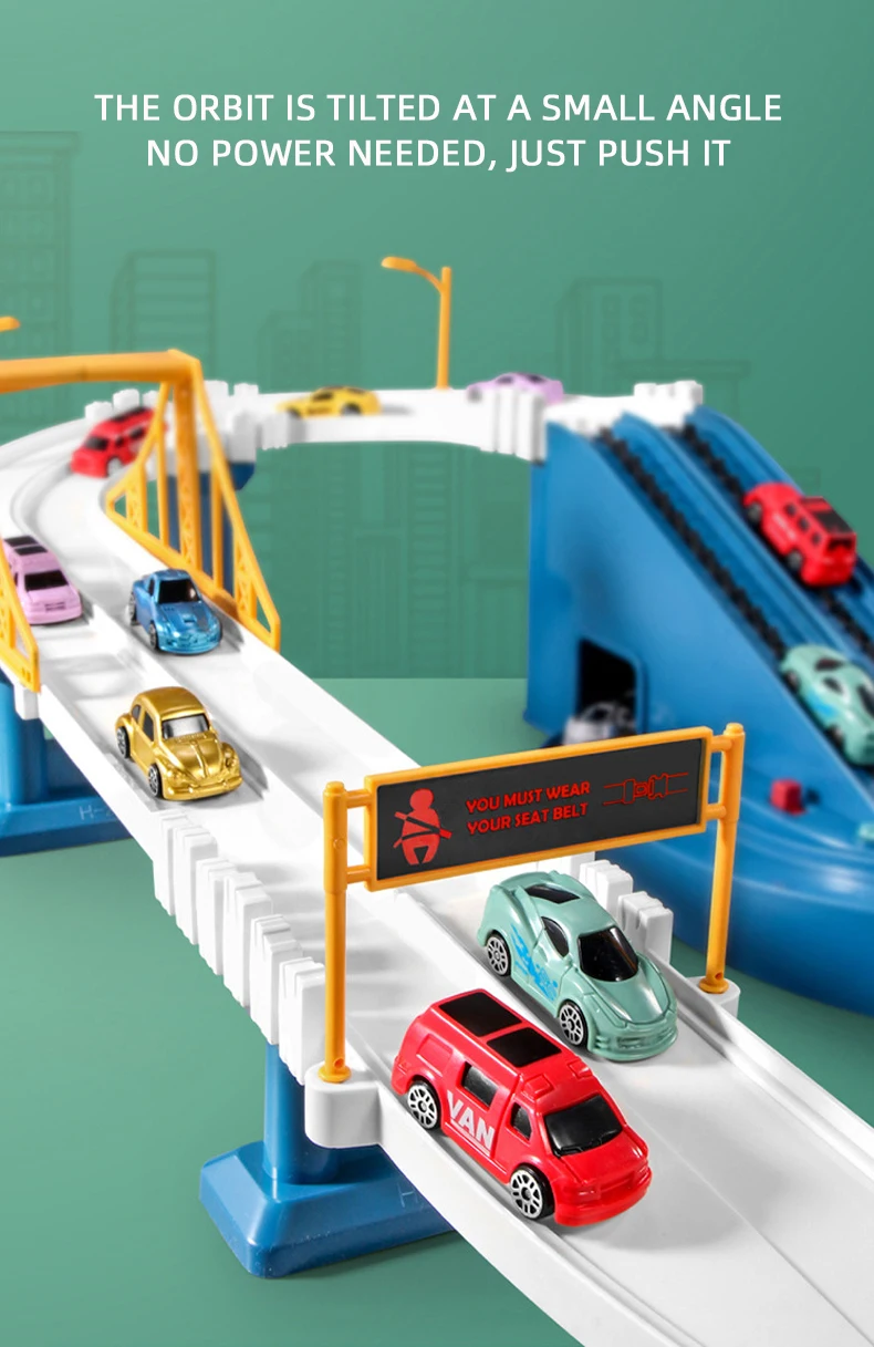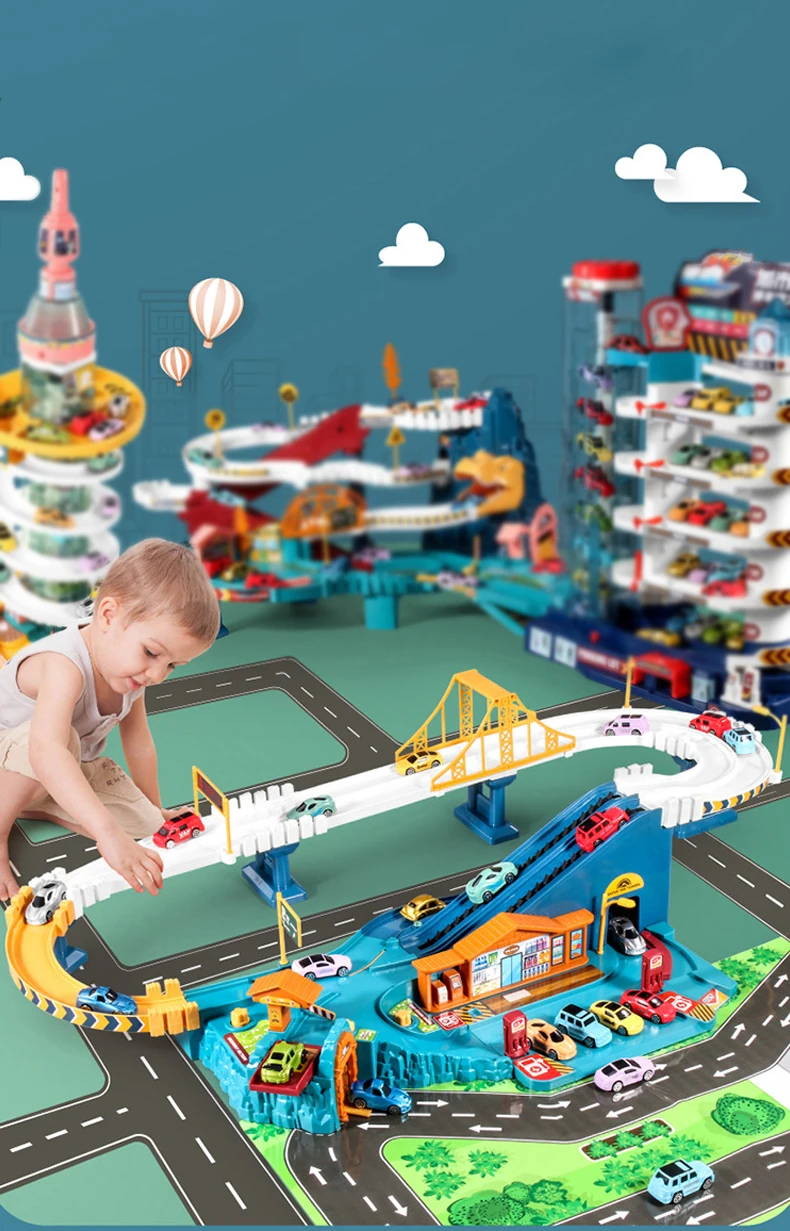 | Description | Inertance Small Vehicles Car Slide Track Adventure B /O City High Way Road Rail Car |