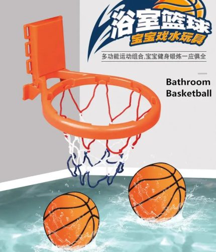 2 IN 1 Bathroom Bathing Time Water Play Basketball Hoop Shoot PU Silicone Balls Baby Bath Toy For Sale
