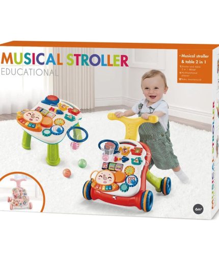 2 In 1 Sit To Stand Activity Play Center Push and Pull Toy Infant Stroller Learning Table Baby Walker with Music