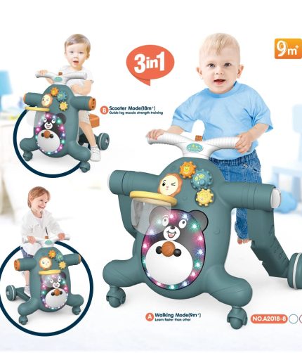 3 IN1 Multifunctional Toddler Gifts Push Stroller Baby Walker Sit-To-Stand Learning Walker Kids with MusicLight