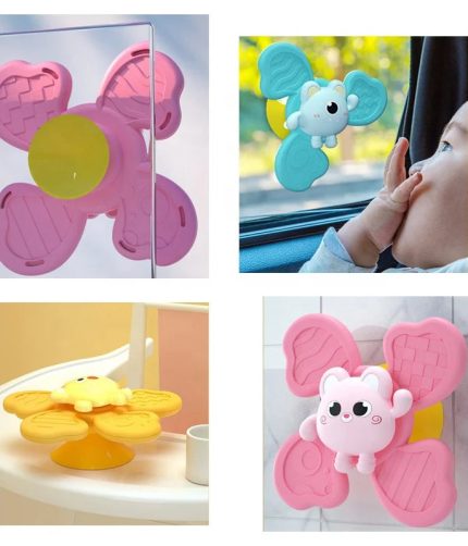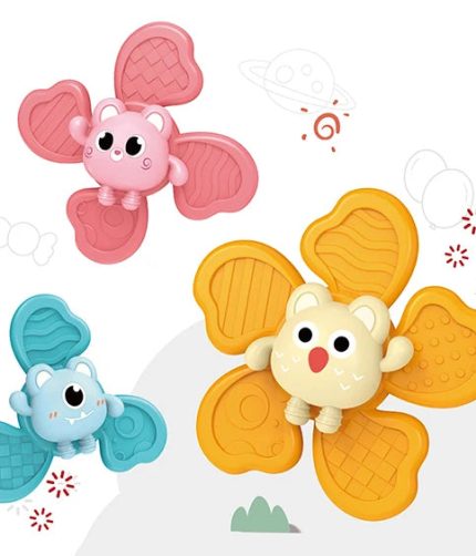 3PCS Silicone Baby Teethers Infant Sensory Fidget Plastic Top Rattles Windmill Bathing Bath Rotating Suction Cup Spinner Toys