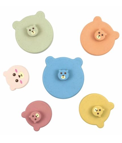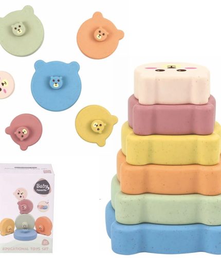6 PCS Wheat Straw Soft PVC Baby Chewable Teethers Bear Face Stacker Tower BB Whistle Squeeze Play Stacking & Nesting Toy
