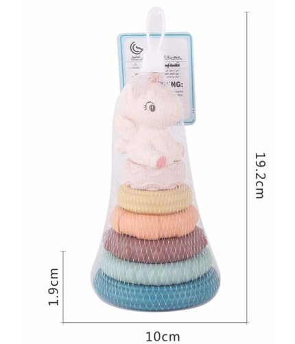 7 PCS Baby Chewable Teethers Soft Silicone Building Block Stacker Tower Squeeze Play Stacking & Nesting Rings Toy