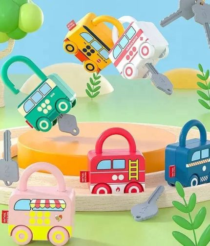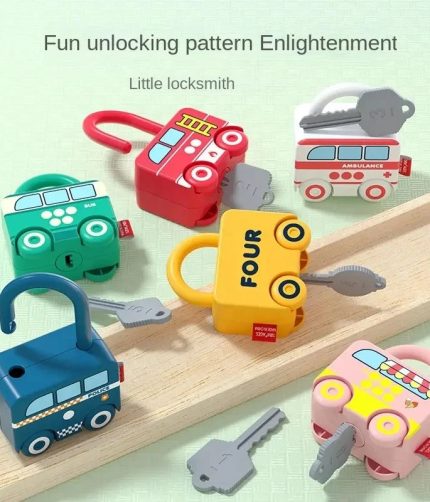 6PCS Mentessori Teaching Aids Colorful Mini Cartoon Car Matching Lock Keys Toys Numbers Counting Educational Toy for Kids