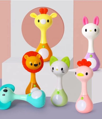 6PCS Newborn Cute Animals Music Hand Bell Hammer Stick Shaker Baby Rattles for Toddlers