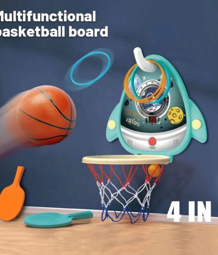 4 In 1 Jump High Ring Toss Game Table Tennis Basketball Shoot Machine Indoor Outdoor Sport Basketball Stand Toys for Kids