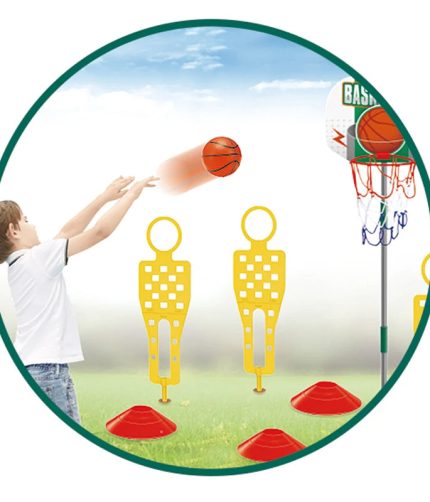 5 in 1 Indoor Outdoor Sports Rack Toy Point System Portable Adjustable Hoop Basketball Stand Toys for Kids