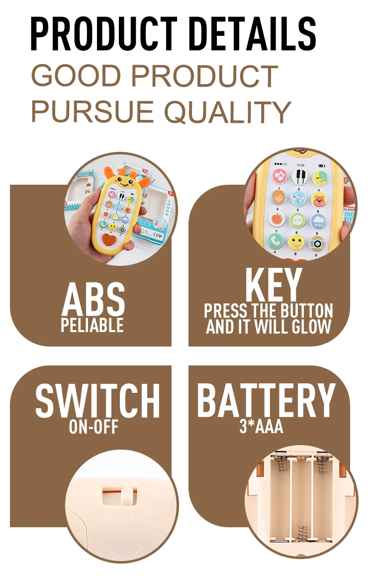 | Packaging Details | 1 piece / Window Box, 144 pcs / cartonBattery Operate Learning Toys Cute Animals Soft Rubber Music Smart Phone Toy with Light for Baby |