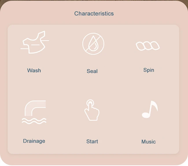 Function Simulated real washing/Dry drainage/Light up/Sound