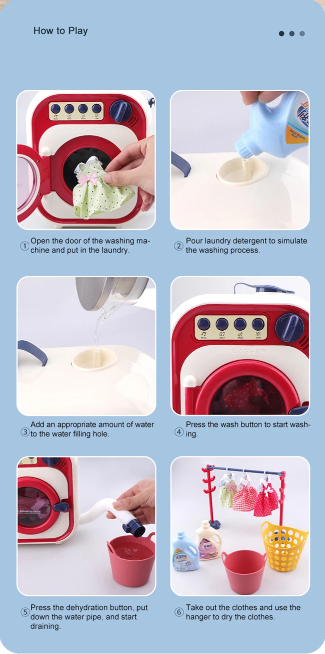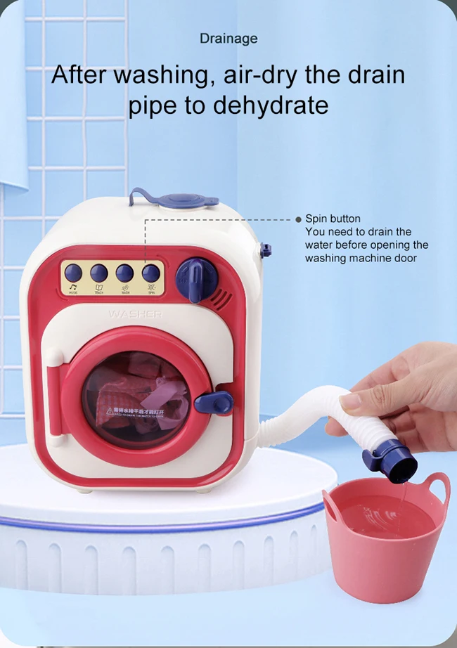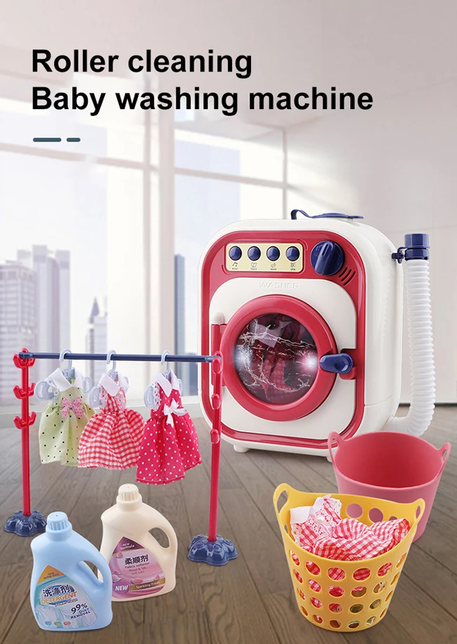 Battery Operated Electric Home Appliances Doll Dress Up Clothes Cleaner Kids Pretend Play Mini Toy Washing Machine For Kids