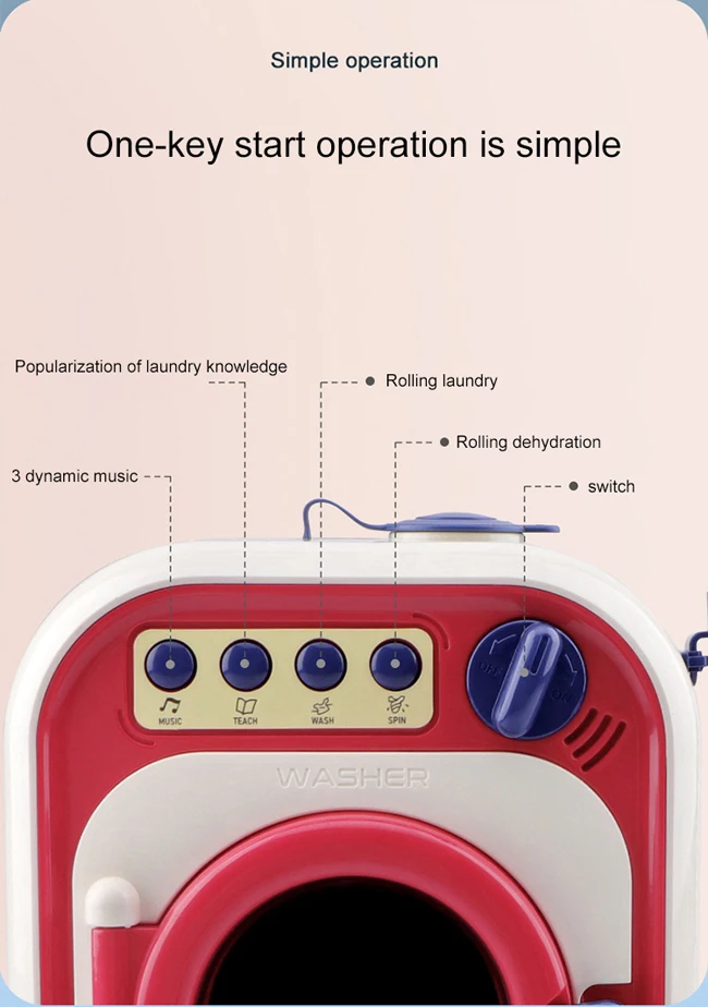 • Interactive Pretend Play Function: Engage children with simulated washing, light, and sound features for immersive play.