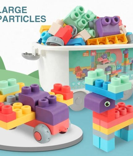 80PCS STEM Educational Montessori DIY Baby Bitable Stacking ECO TPE Boilable Rubber Large Soft Silicone Building Block for Kids