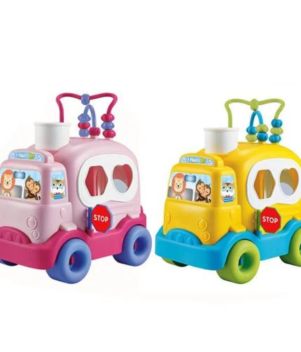 Baby Educational Learning Plastic Toys Sliding Fun Bus Shape Sorter With Blocks