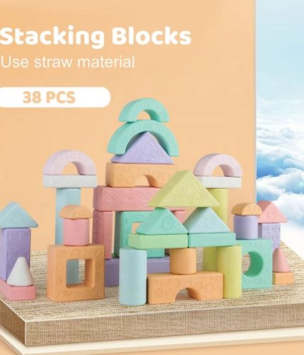 38PCS Eco Friendly Wheat Straw Montessori Building Toy Bricks Puzzle Game Geometric Blocks Stacking Blocks Toys for Baby