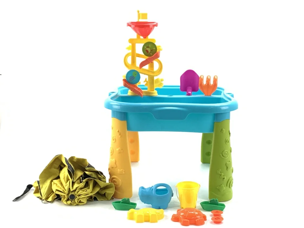 Chenghai Sam Toys Kids Summer Outdoor Beach Table Play Plastic Toddler Sand and Water Table with Beach Umbrella