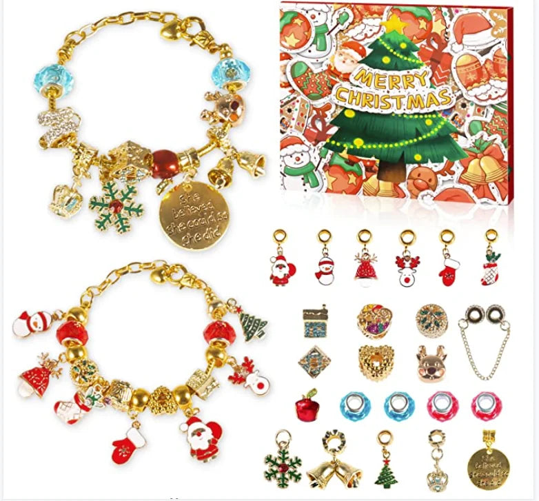 DIY Christmas Charms Bracelet 24 PCS Blind Box Sterling Silver Fashion Jewelry Pendants Make Up Toy for Girl