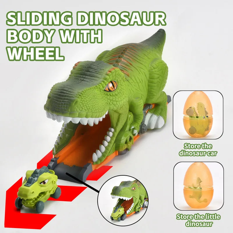 New Arrival Dinosaur Tunnel Car 3D Small Dinosaur Model Kid Inertial Slide Track Friction Toy Vehicle with Egg