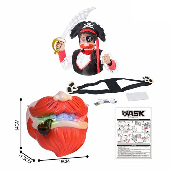 Voice Changer Pirate Mask Kids Mouth Interaction Toy Plastic Headgear Party Masks with Light and USB
