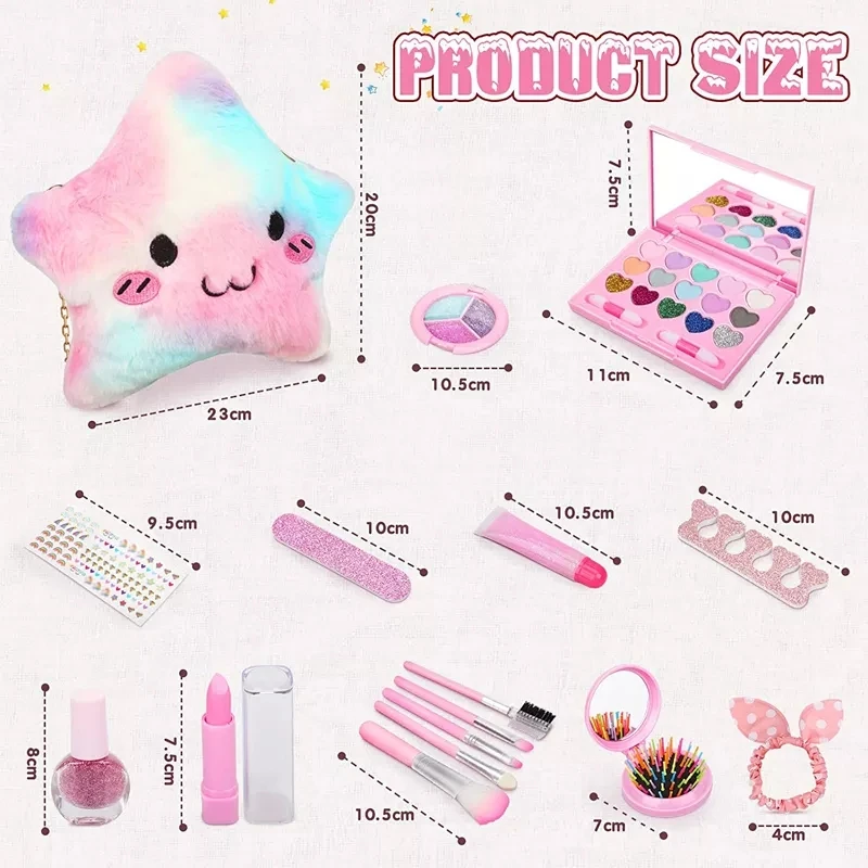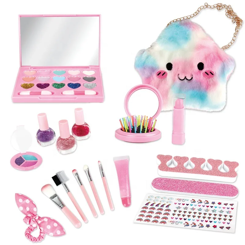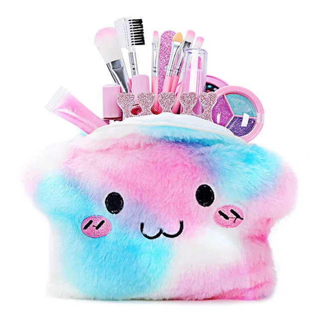 Detail of?New Toys Pretend Play Cosmetics Brush Sets Eyeshadow Lipstick Nail Polish Comb Washable Girls Makeup Toys with Star Plush Bag