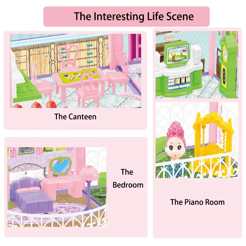 | Packaging Details | 1 set / color box, 18 box / cartonDIY House Toy for Kids Doll House Pretend Play Toy for Children with Music and Light Furniture |