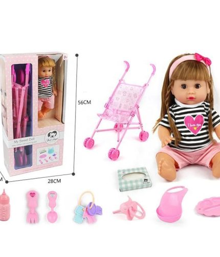 14 Inch 6 Sounds Drink Water Pee Viny Baby Girl Doll with Baby Stroller and Other Accessories