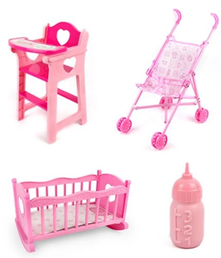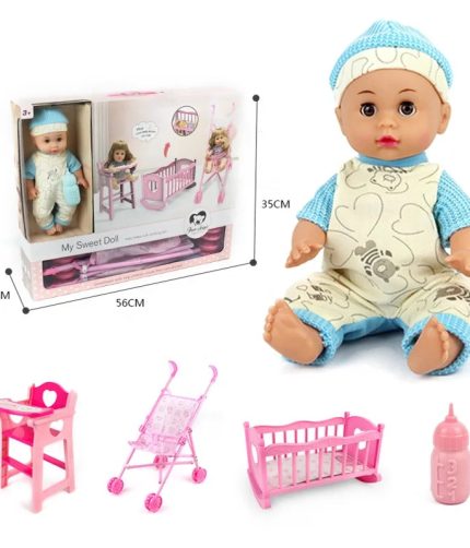 3 IN 1 14 Inch 6 Sounds IC Drink Water Pee Dolls with Crib Chair Stroller