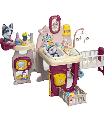 91PCS Indoor Game Plastic DIY Simulation Music Light Role Play Doll Pet Nursing Toy with Accessories for Girls