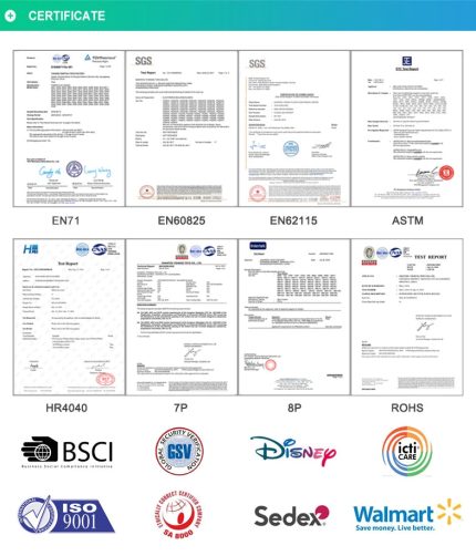 - Comprehensive Certifications: Meets multiple international safety and quality standards such as GCC, EN71, IEC62115, 10P, ASTM963, HR4040, ensuring product reliability and market acceptance.