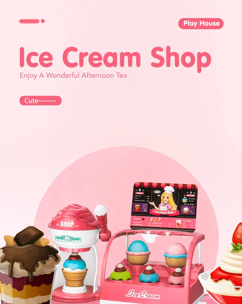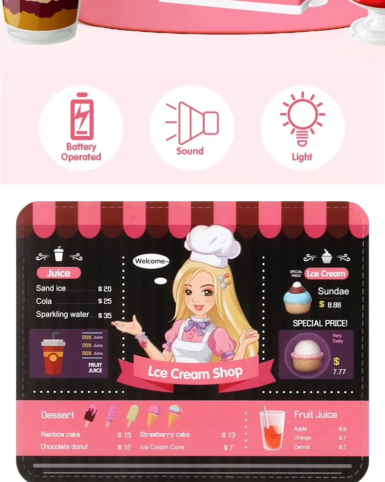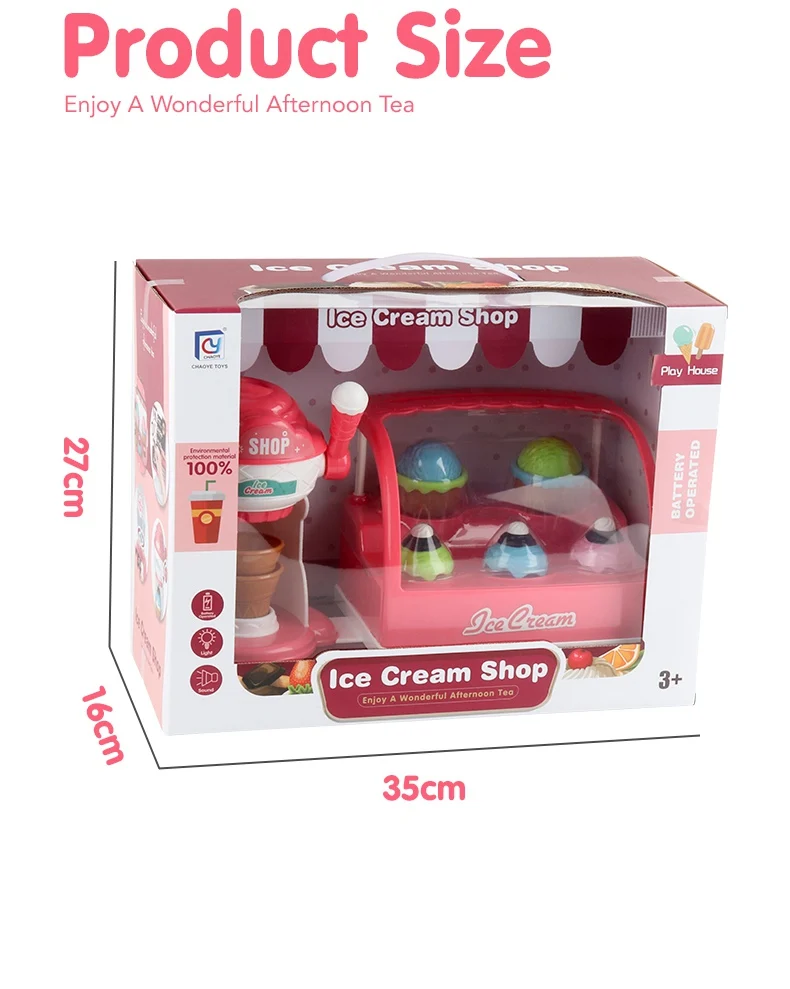 Description Eco-friendly Electric Role Play Accessories Food Toy Ice Cream Maker Dessert Shop Ice Cream Toy with Light
