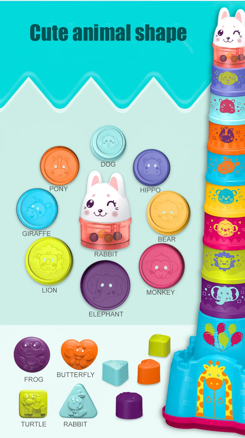 | Description | Educational Stacking Toys Bathing 9PCS Nesting Colorful Animals Stacking Cups for 12+ Months Baby |