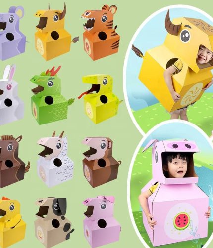 12 Chinese Zodiac Animals 3D Paper Cardboard Shells Wearing Models Toy